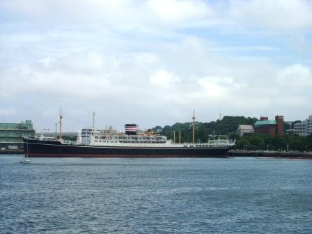 大桟橋に、停泊中の「飛鳥U」 (横浜港は3万トン級の船4隻同時に接岸できる国際港 で、クルーズ客船の発着数では日本一を誇っています) |